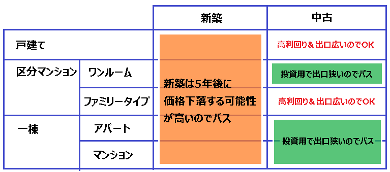 住宅用の不動産投資をセグメント分けすると以下の図のようになります。